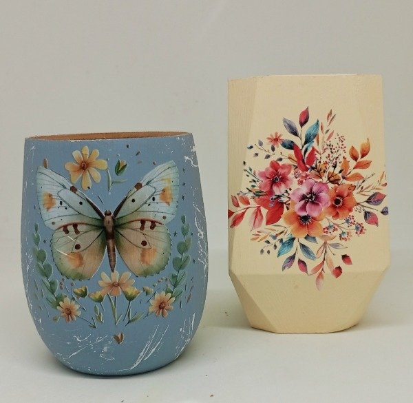 Te Presento La Capsula Florecer, Mates de Madera Calde , realizados con una técnica mixta de pintura y láminas UV